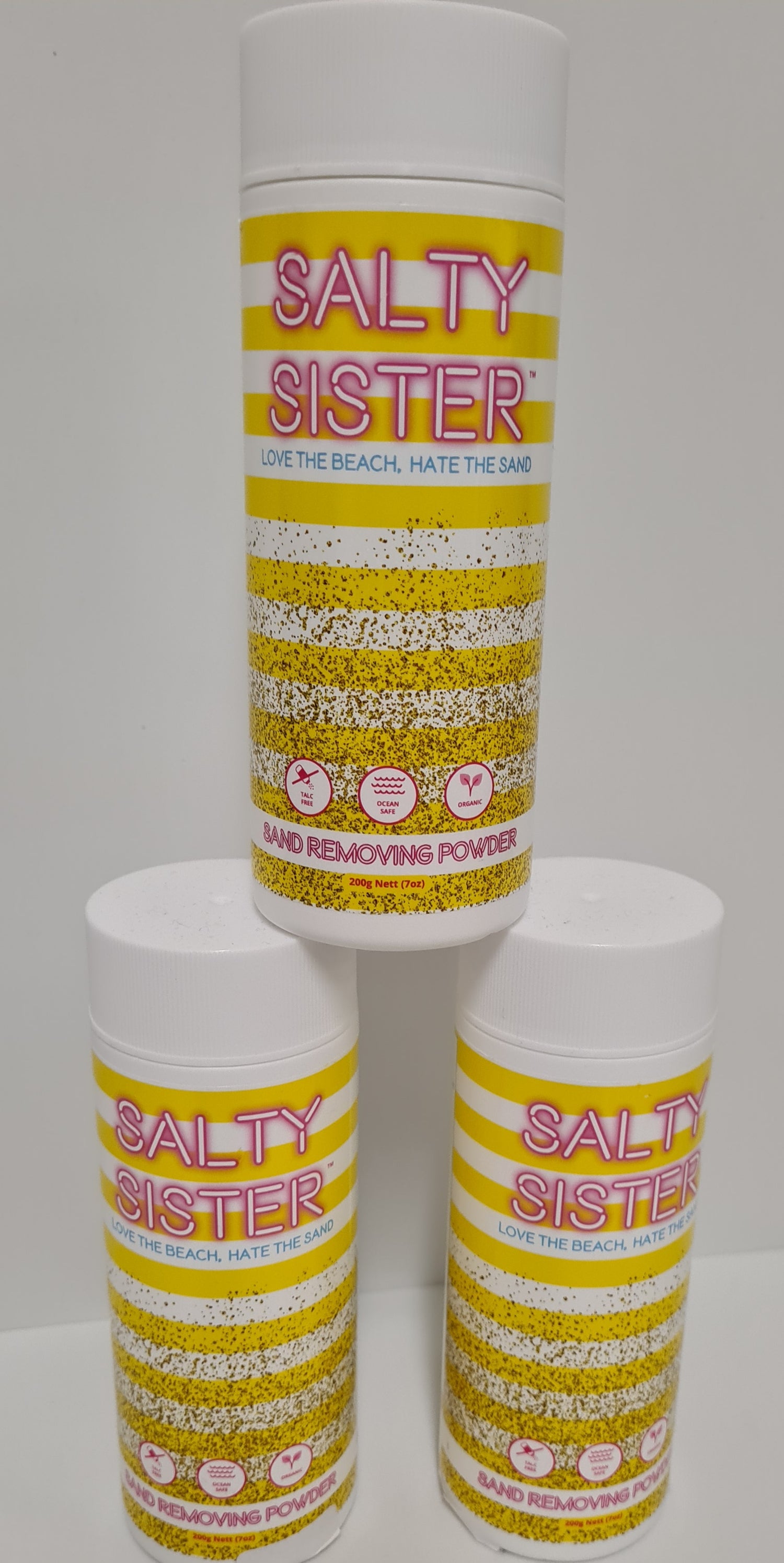 Solving the age old problem of 'Love the beach, Hate the sand' became the inspiration for what you now know as Salty Sister Sand Removing Powder. For us, making beach days easier in the simplest, most organic and natural way possible - whilst remaining ocean-friendly - was a major goal. The fact we are also vegan and naturally sand coloured was a bonus!